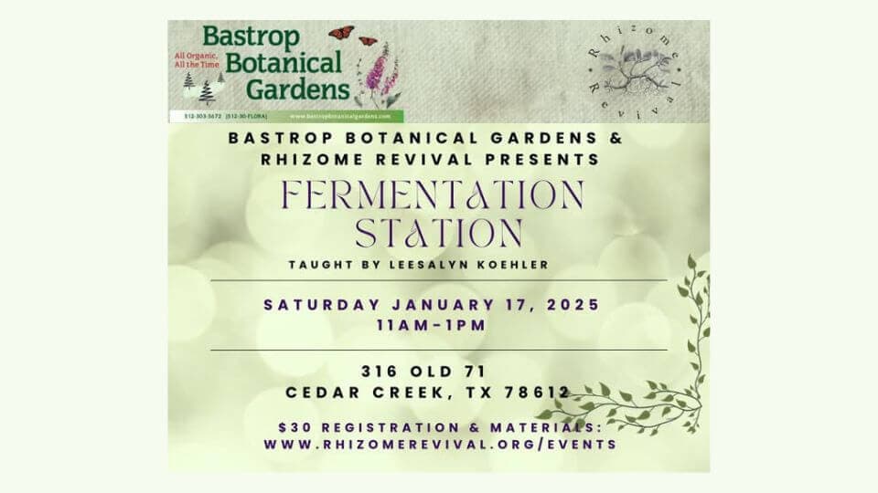 Join us on Saturday, January 17th, from 11:00 a.m. to 1:00 p.m. Always a good class with Leesalyn Ramapriya Koehler of Rhizome Revival Educational Farm teaching at Bastrop Botanical Gardens. π